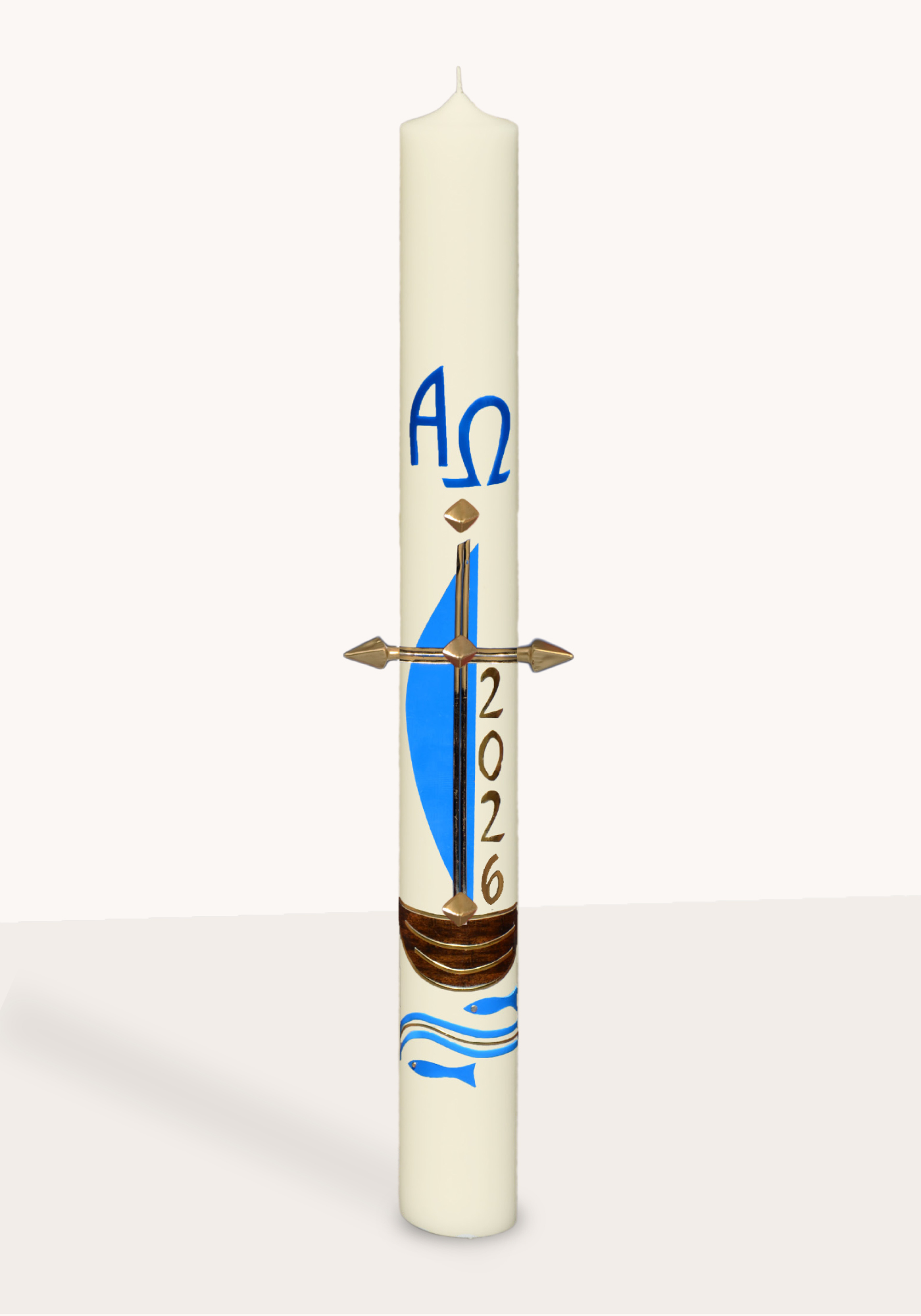 Osterkerze "Christenschiff blau-gold"