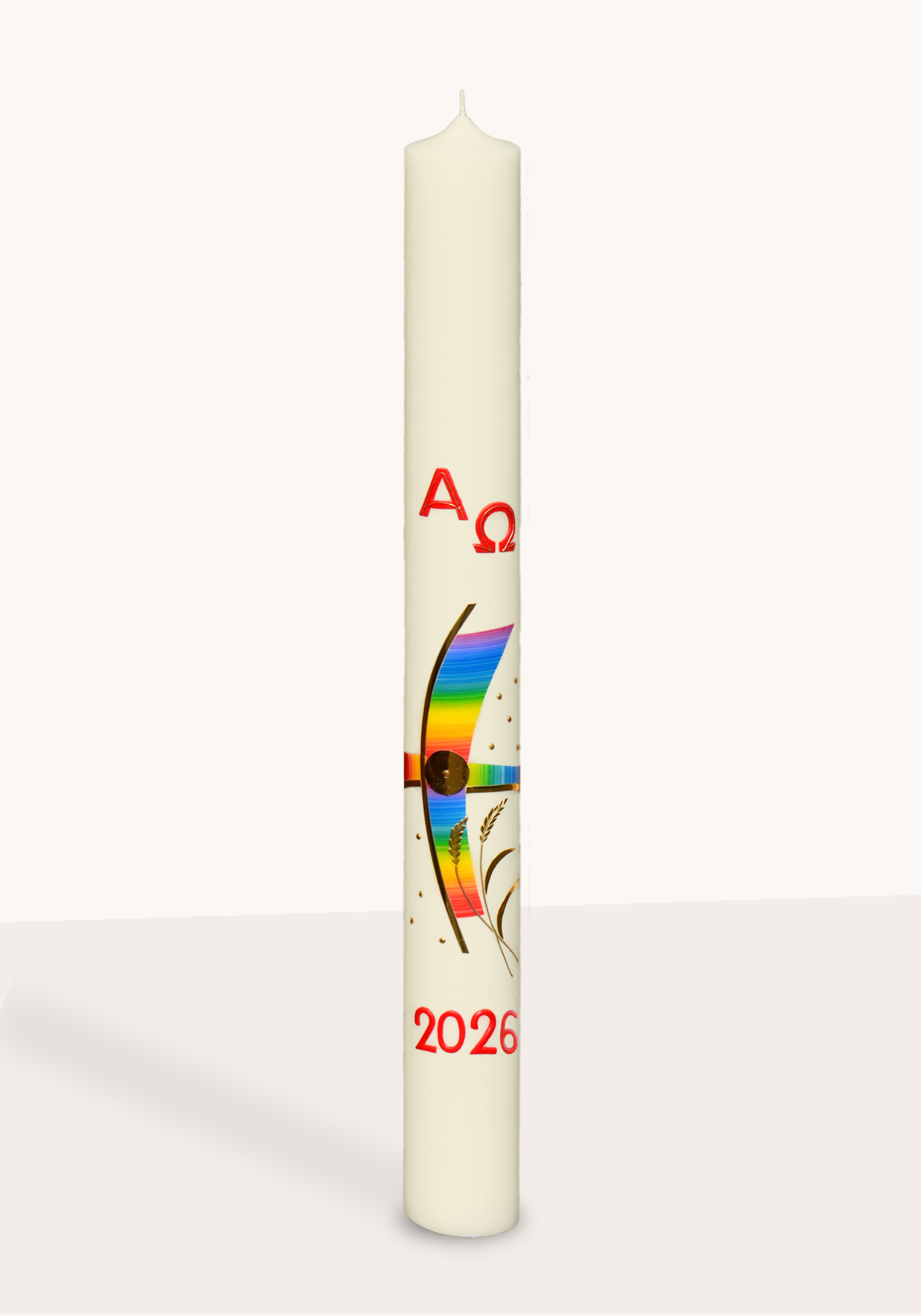 Osterkerze "Regenbogenkreuz"