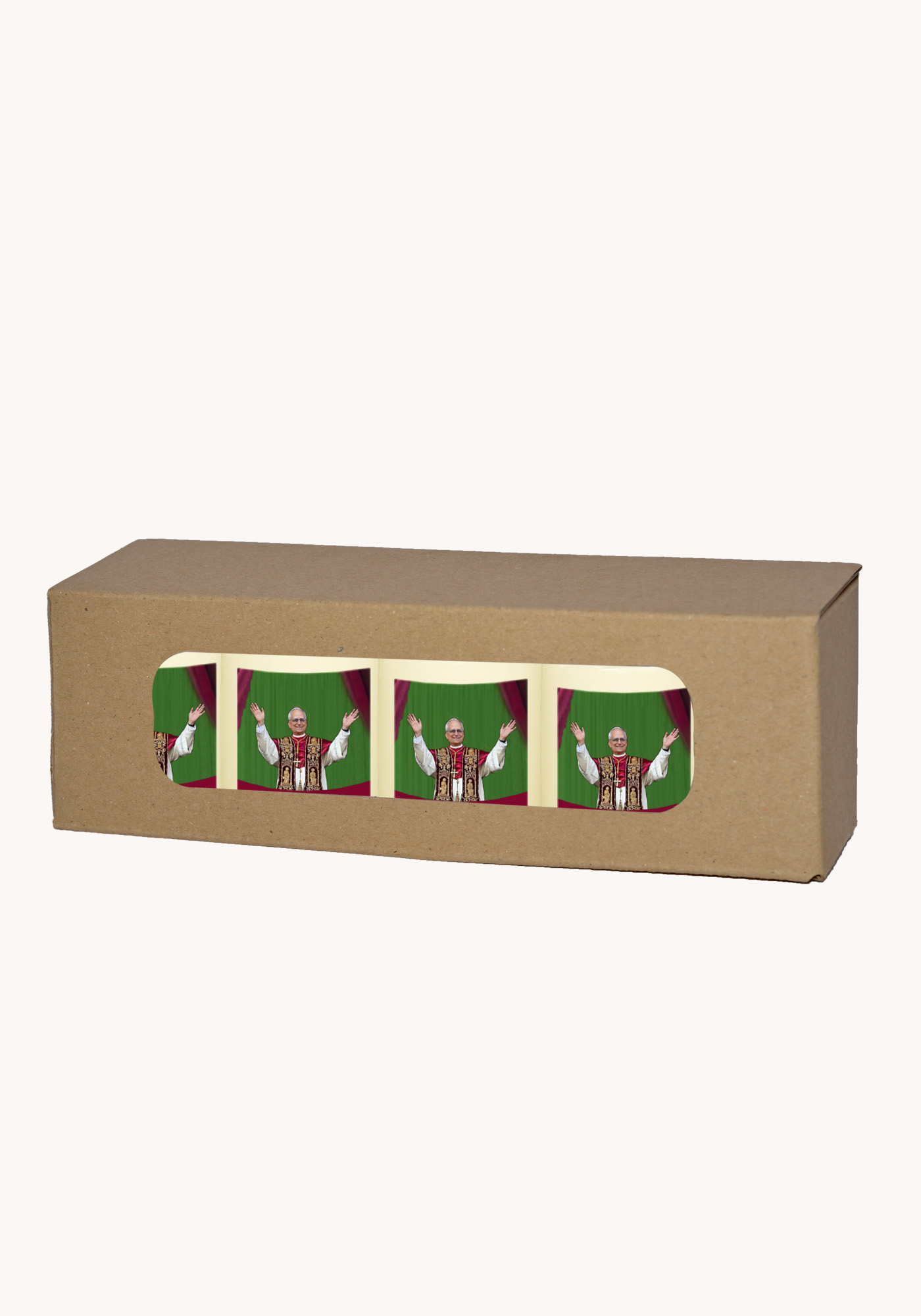 Papstkerze "Leo XIV." 6 x 5 cm im Sichtkarton à 4 Stück