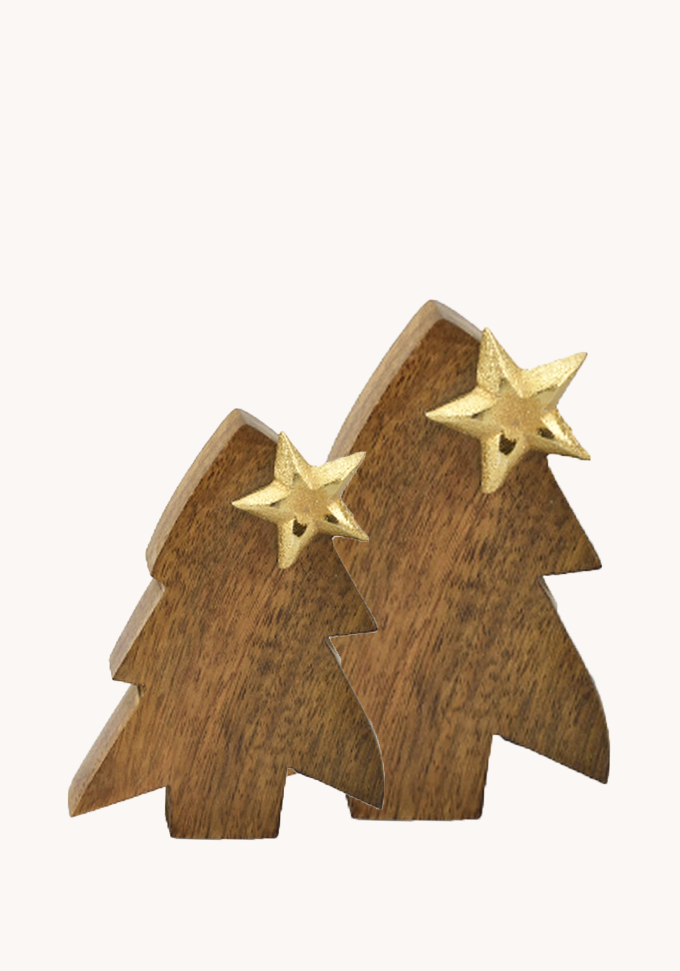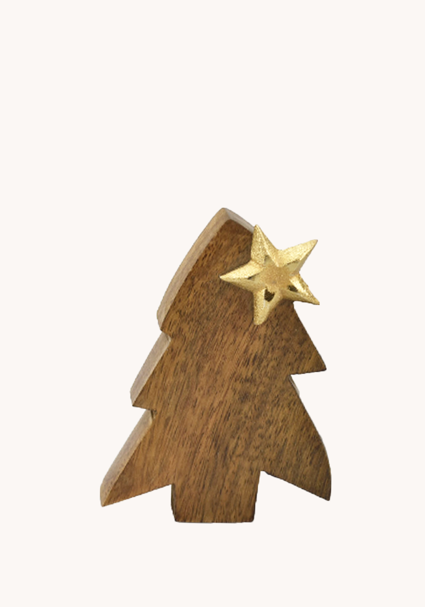 Eine hübsche Holztanne mit Goldstgern für Ihre Adventsdeko. Die Tanne ist aus Mangoholz, einem ökoligischen und nachhaltigen Rohstoff .